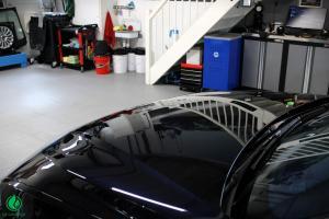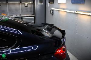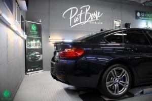 De in Carbonschwarz kleurige Gran Coupé voorzien van IGL Coatings Poly. 12mnd duurzame coating. Met de nodige zorg de werkzaamheden uitgevoerd, Van handwas tot de coating aan toe. Velgen en banden verzorgd en de ramen gelapt.