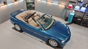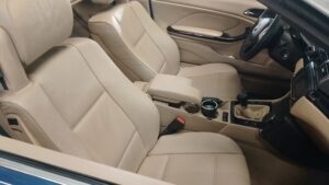 Deze in Topas blauwe BMW het leder van de voorstoelen herstelt.