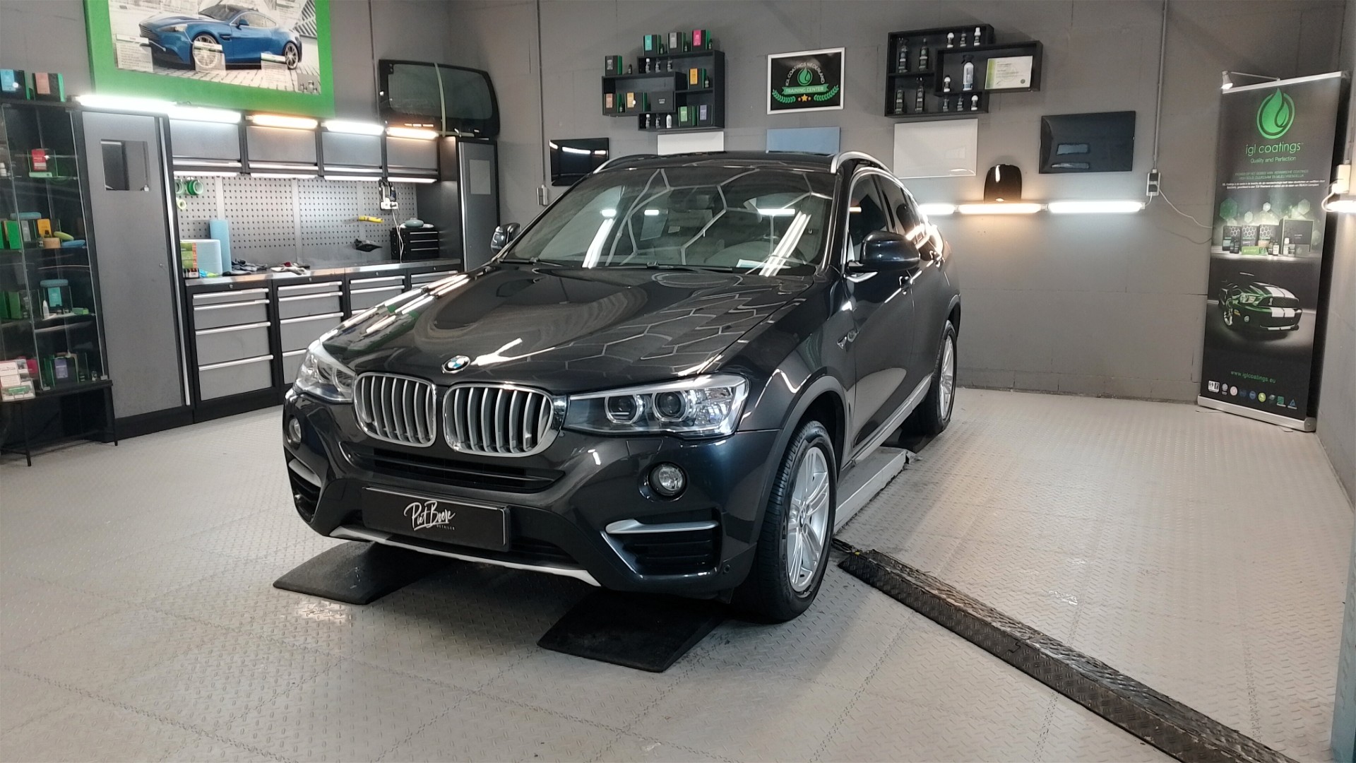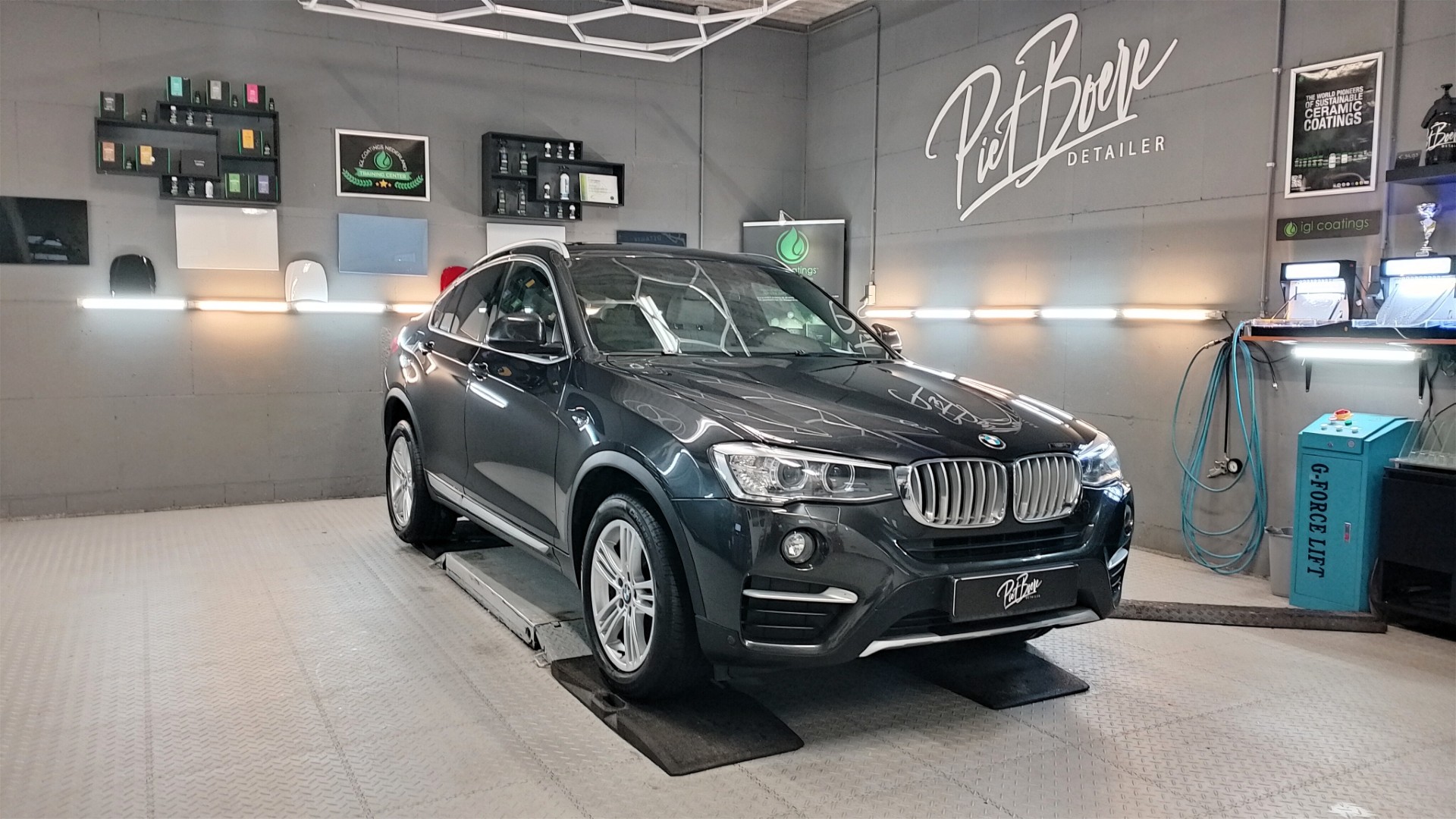 De grijze/ leverkleurige BMW X4 een schoonheidsbehandeling gegeven. Doormiddelvan handwas, lakdiepte reiniging en polijsten. Daarna voorzien van IGL Coatings de wax en Premier. Voor een super waterafstotende laag, glans en lakbehoud. Velgen in de spraywax gezet en de banden in de dressing.