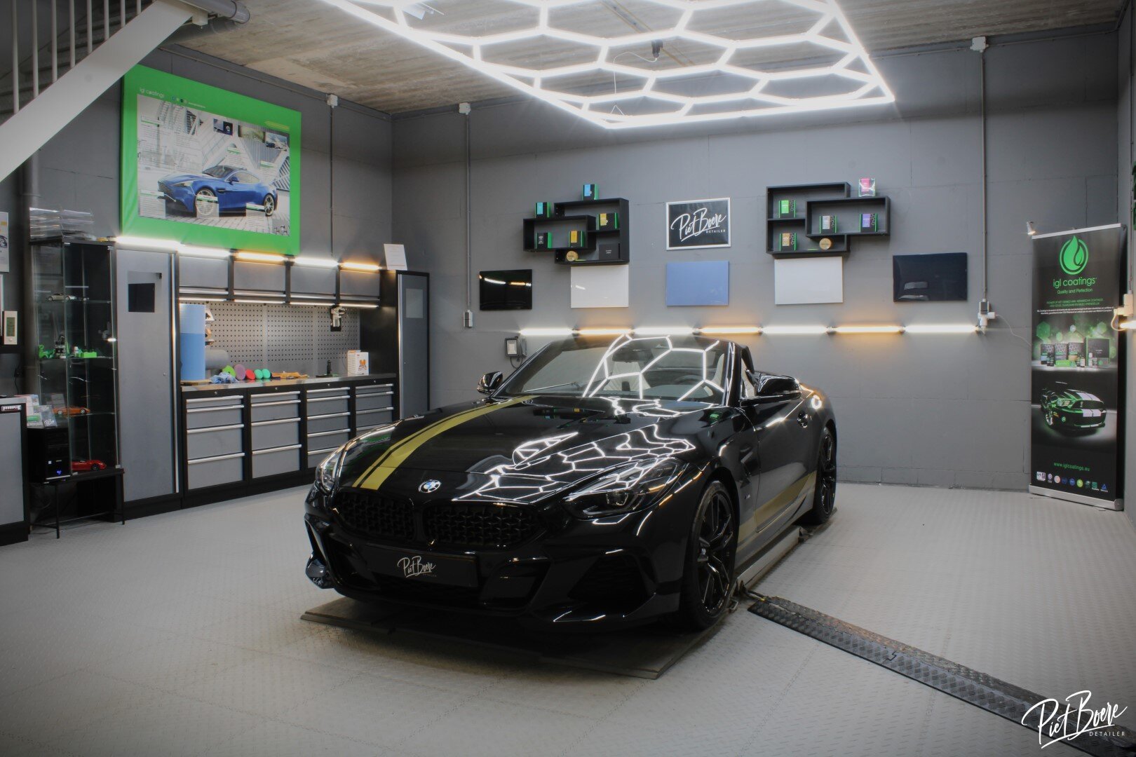 De BMW Z4 op verzoek het interieur en exterieur aanpakken. De softtop ontgroenen, reinigen en impregneren. Daarnaast de lak aanpakken met als doel voorzien van keramische coating van IGL. De 12mnd duurzame Poly versie. Daarna een laagje IGL Coatings Premier aangebracht.