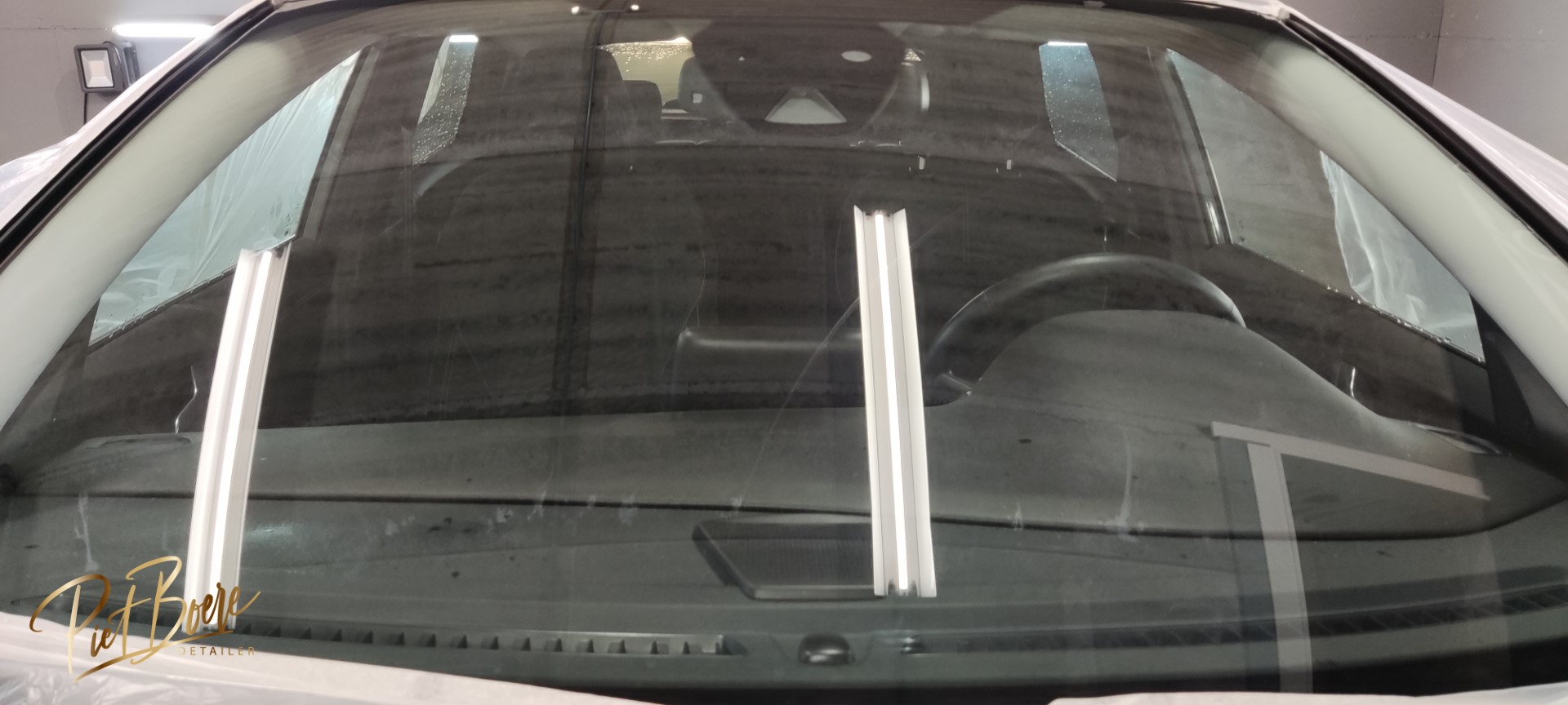 Uit de voorruit van deze Puma moesten de krassen eruit gehaald worden. Veroorzaakt door vuil onder een ruitenwisserblad. Aan mij de taak om dit uit te voeren. 1 van mijn specialismes. Deze techniek vereist een hele ander behandeling als lak polijsten en / of schuren. Dit proces gebruikt hele andere polijstmiddelen die niet bestemd voor autolak.