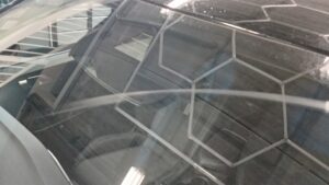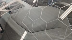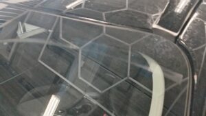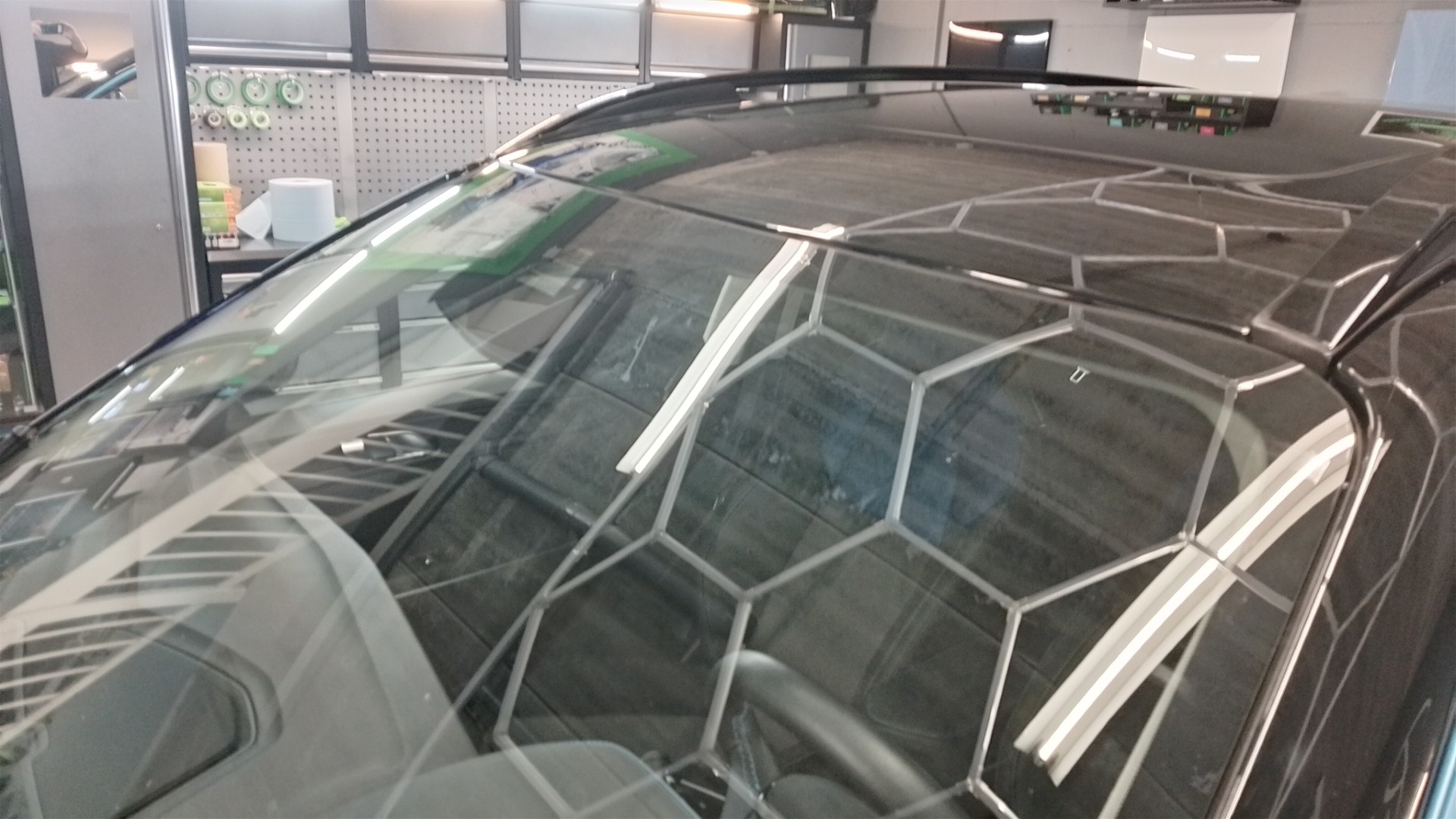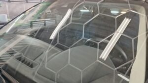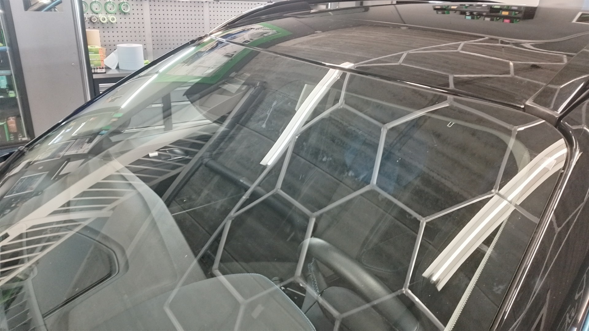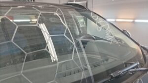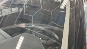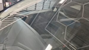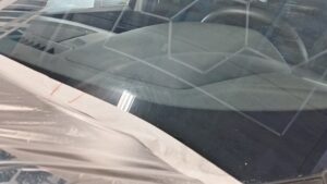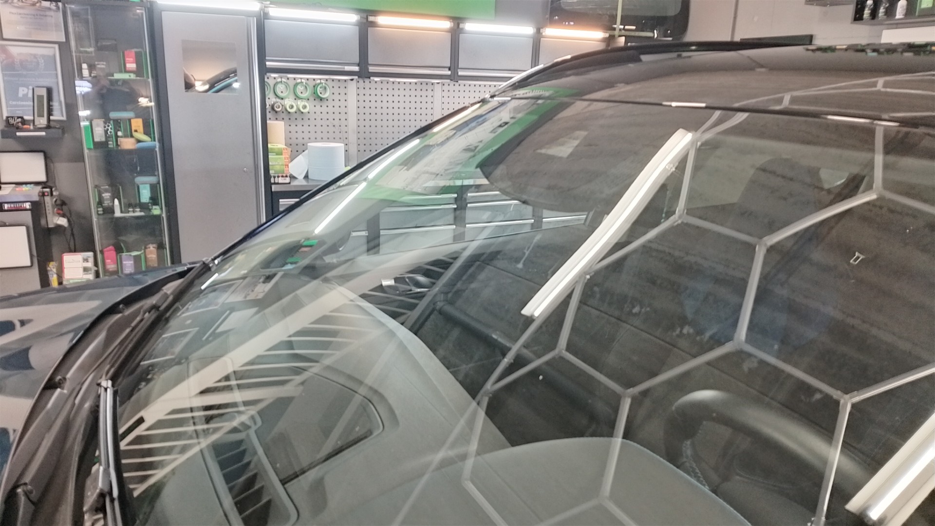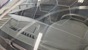 Meerdere zware krassen door het ruitenwisser blad veroorzaakt. Deze verwijderen met een doel om 90% te kunnen halen. Alleen nog rand schade, die niet in het zichtveld zit. Maar wel in de zwarte arceer randen zichtbaar zijn.