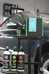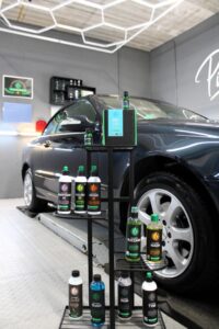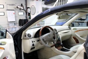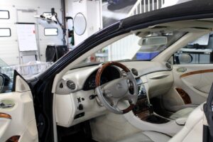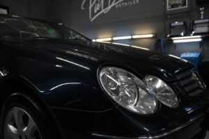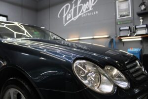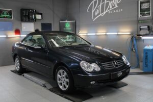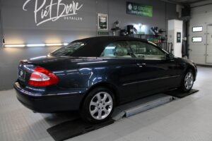 Deze CLK 200 onderhanden op het vlak van keramisch coaten, glaspolijsten, koplampen polijsten en leder herstel/ verzorging. De fraaie blauw/groene kleur komt weer helemaal tot zijn recht. Gepolijst met F1 Compound, F2 polish en F3 finish. Na ontvetten in de IGL Poly gezet. Daarna IGL Premier aangebracht en uitgepoetst. Velgen in de spraywax gezet. Banden voorzien van IGL Tyre. Ramen met IGL Glas reiniger schoon gemaakt.