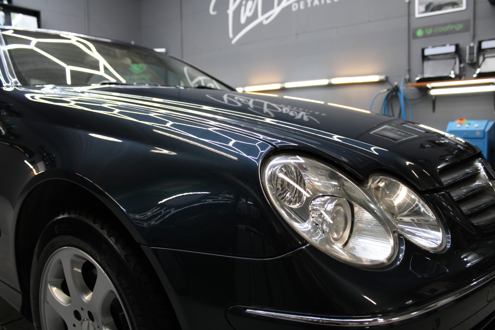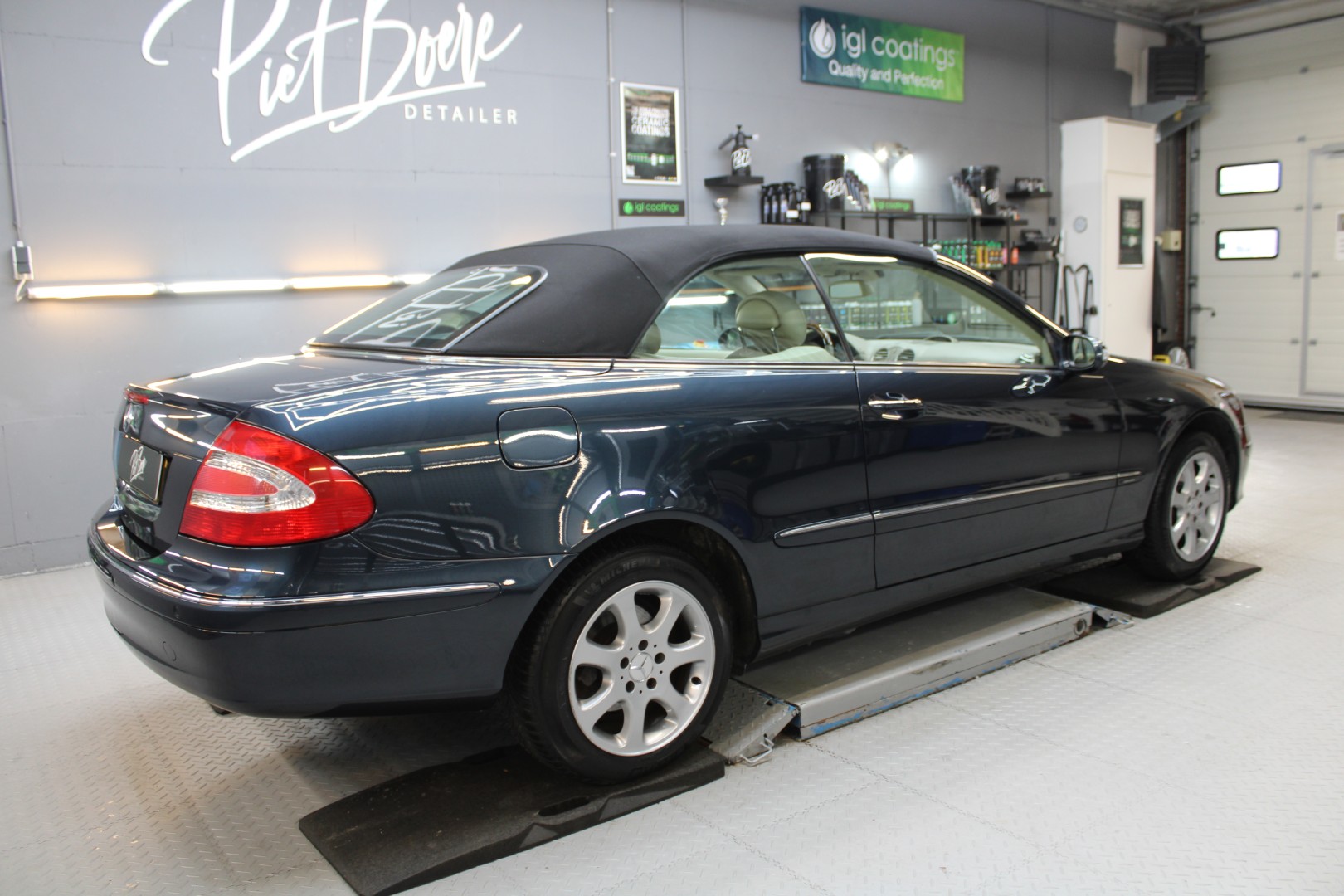 Deze CLK 200 onderhanden op het vlak van keramisch coaten, glaspolijsten, koplampen polijsten en leder herstel/ verzorging. De fraaie blauw/groene kleur komt weer helemaal tot zijn recht. Gepolijst met F1 Compound, F2 polish en F3 finish. Na ontvetten in de IGL Poly gezet. Daarna IGL Premier aangebracht en uitgepoetst. Velgen in de spraywax gezet. Banden voorzien van IGL Tyre. Ramen met IGL Glas reiniger schoon gemaakt.