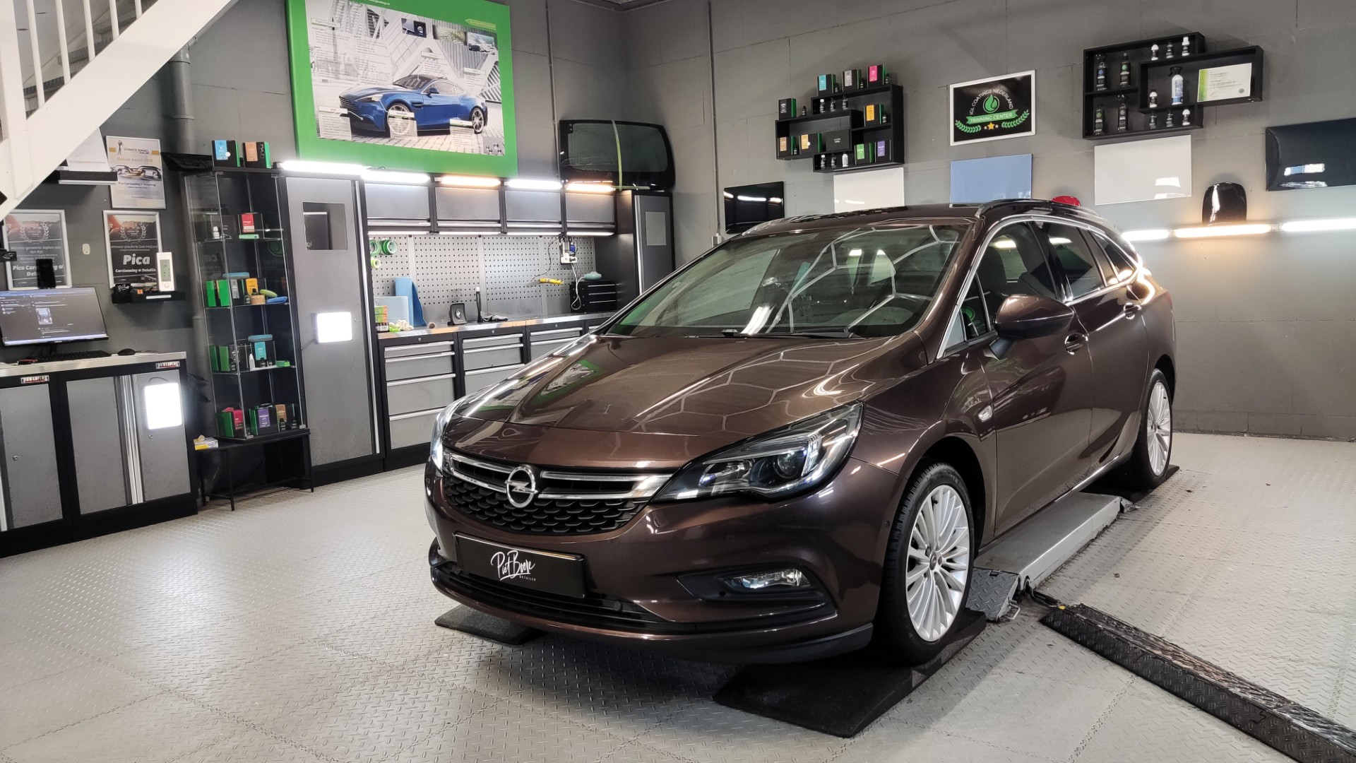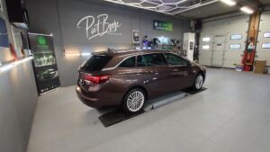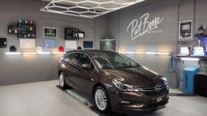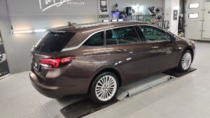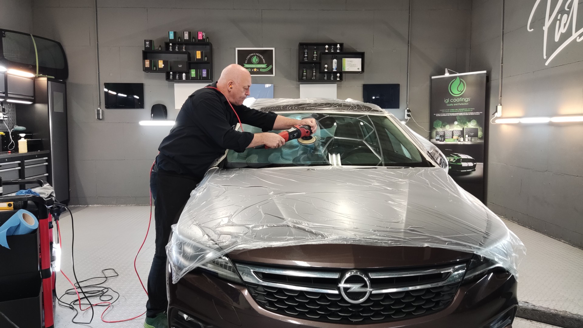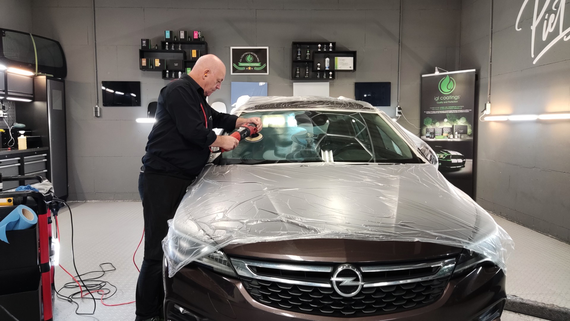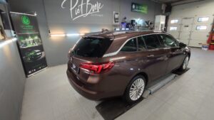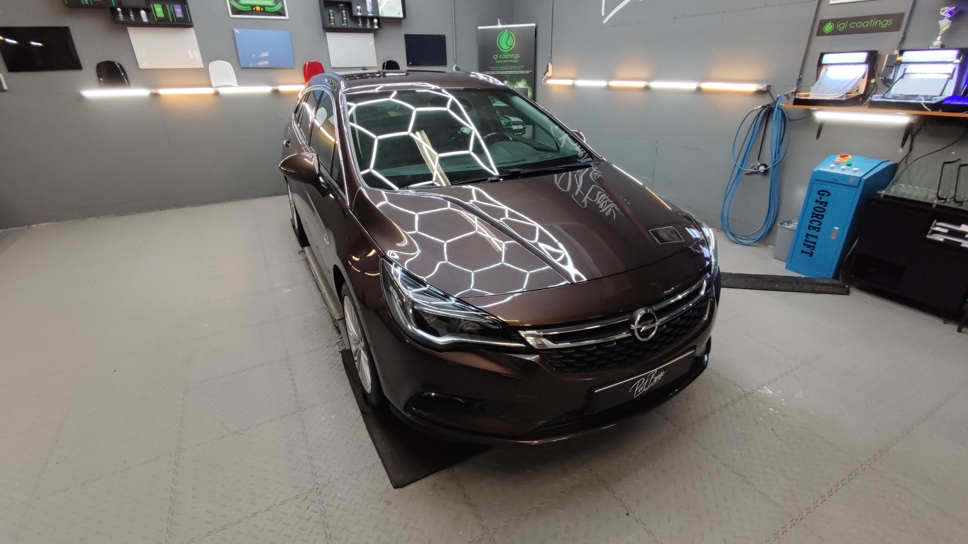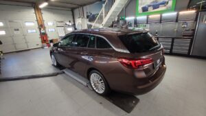 Deze rose-bruine Opel Astra Tourer onderhanden genomen met glas polijsten, koplampherstel en lakherstel d.m.v. meerdere stappen polijsten. Lak bevatte heel veel krassen van wasstraten. De lak beschermd met IGL Coatings Nanowax en Premier