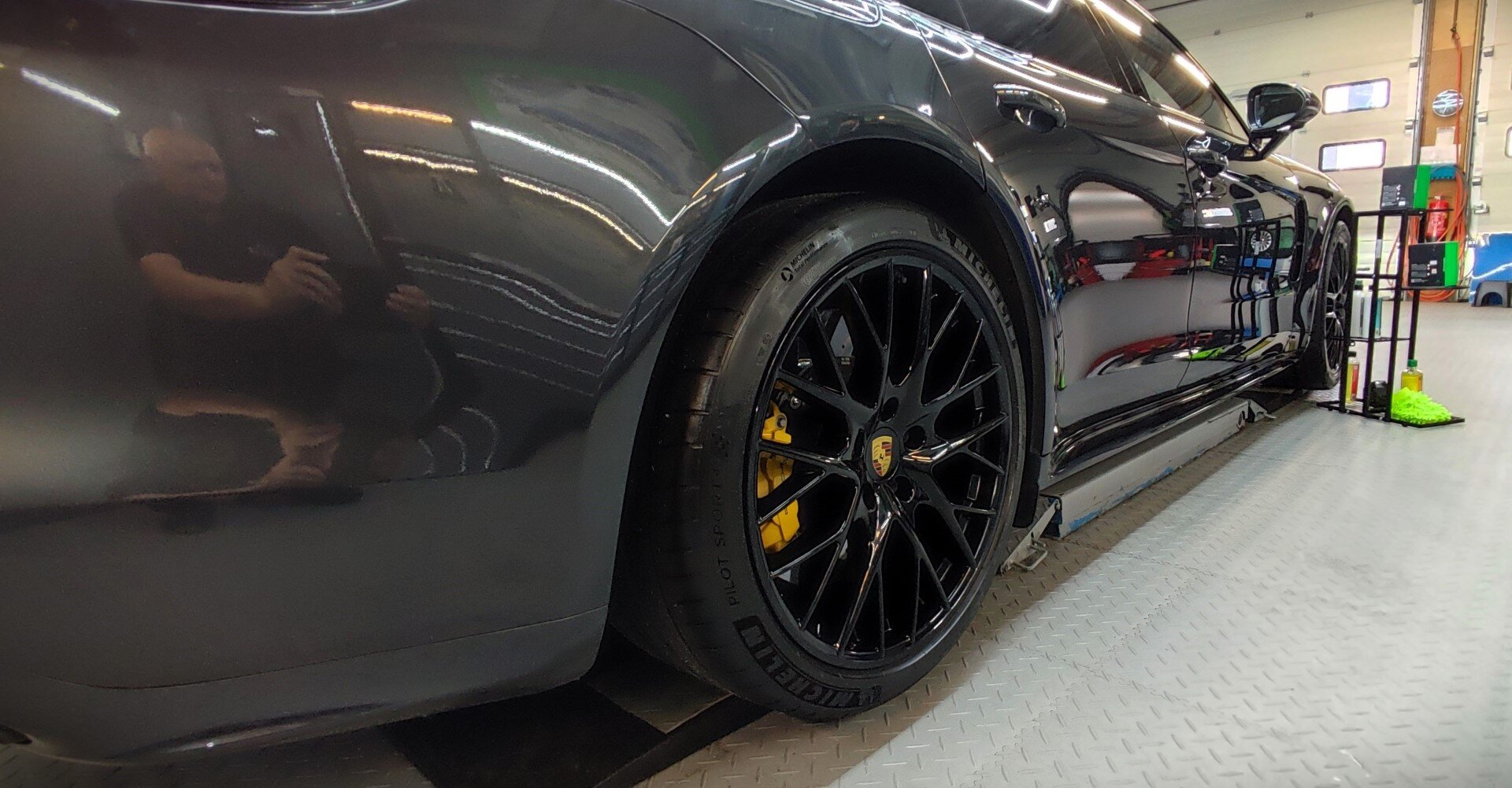 De donkergrijze Panamera onderhanden genomen met hoofdzakelijk het exterieur. De lak voorzien van IGL Coatings Quartz met een duurzaamheid van 24 maanden. Alle (voorbereidende) werkzaamheden uitgevoerd om tot een strak resultaat te komen.