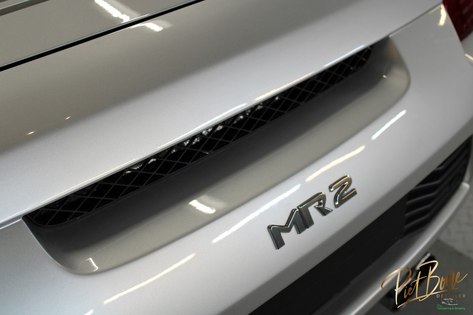 Deze zilvergrijze MR2 in behandeling genomen voor een interieur en exterieur poetsbeurt. De rode stoffen stoelen/ bekleding kon wel wat aandacht krijgen. De zilveren lak opgehaald met lakdiepte reiniging en polijsten. De kap is gemaakt van rubber/plastic en is verzorgd.
